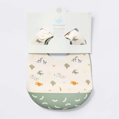 Combat mess and keep crumbs at bay while feeding your little one with this 2-Pack of Silicone Bibs from cloud island™. This set includes two baby bibs — one featuring an adorable print of different animals and one with a white crescent pattern on a green backdrop for a sweet, whimsical look. Made of food-safe silicone, these flexible bibs are designed with a crumb-catcher pocket at the bottom and an adjustable neck strap for baby’s comfort. Plus, the dishwasher-safe design allows for easy cleanup post use.